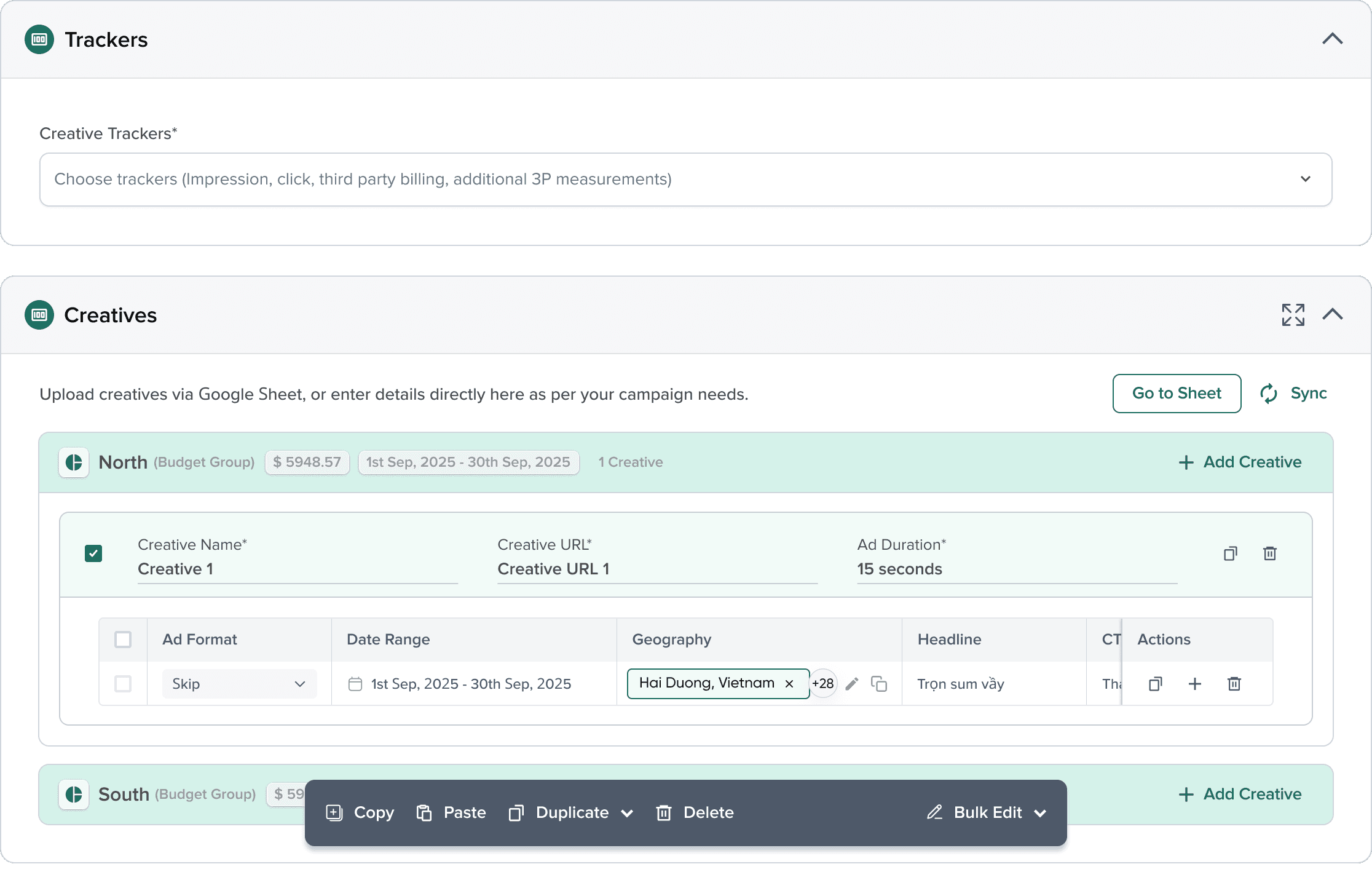 Bulk Editing Creatives
