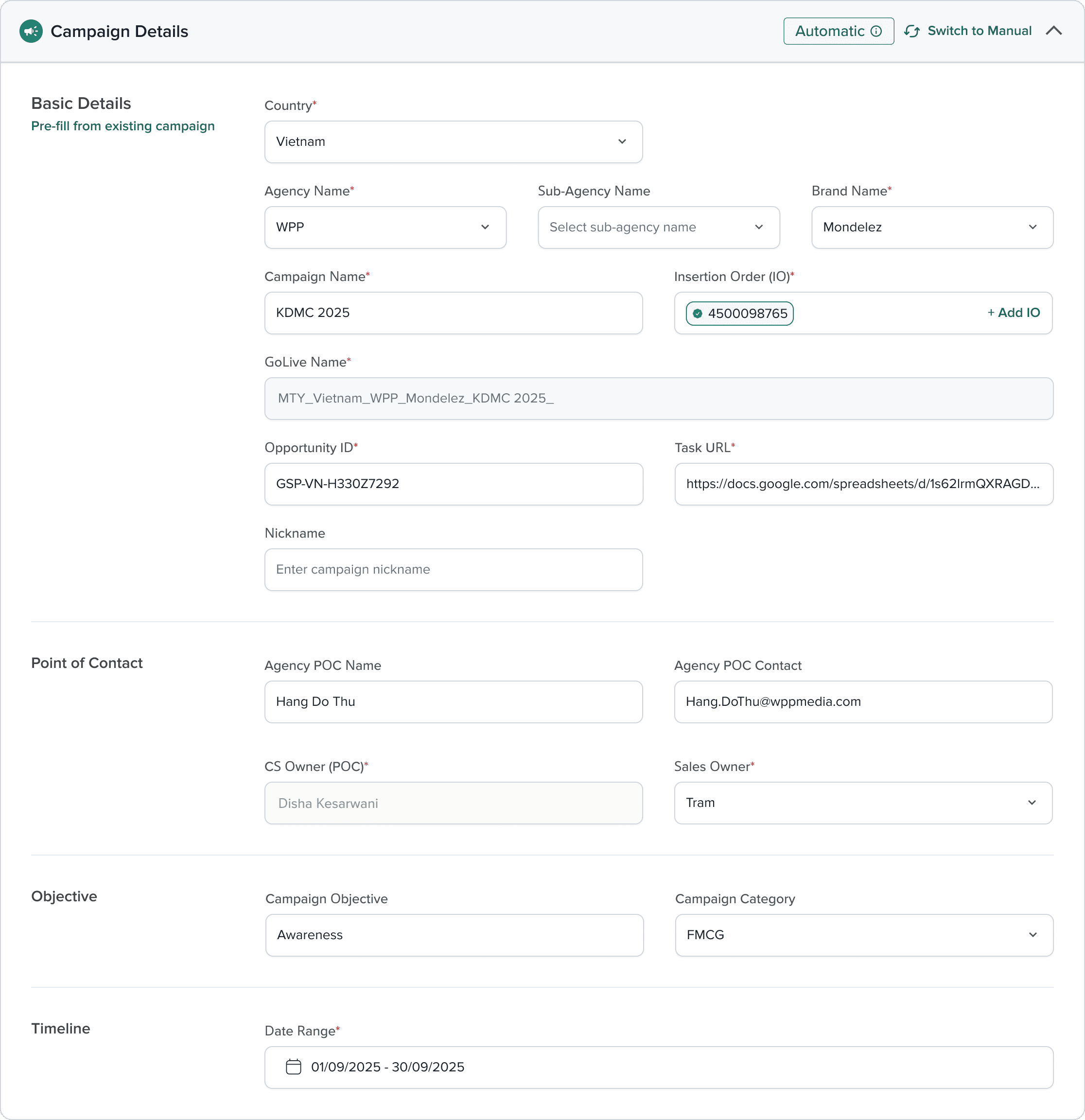 Simplified campaign setup with auto-fill and progress tracking