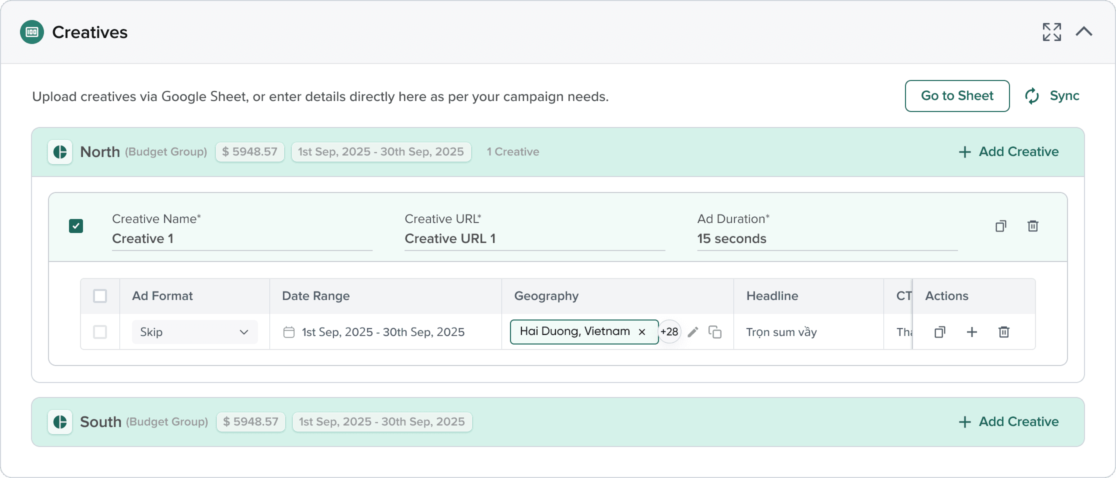 Budget/Creatives Grouping